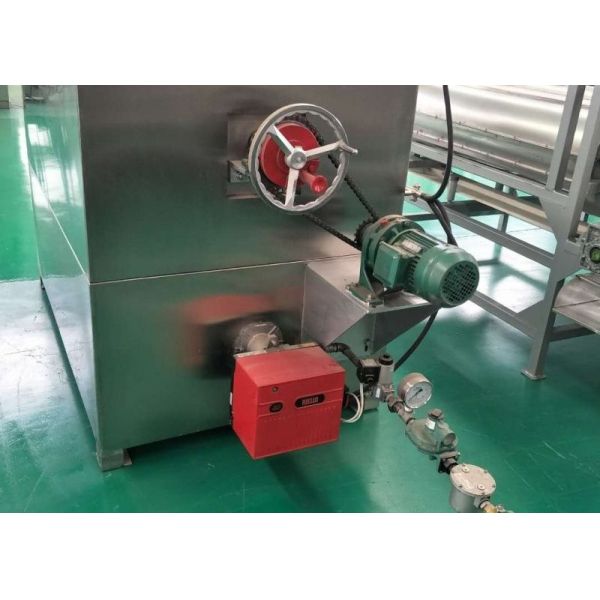 Batch Drum peanut Roaster uses natural gas as heating resource, hot air as medium, utilizes the heat radiation principle to work on the drum directly, There is installed the reducer on back of roaster to drive the drum rotating, there also has special screw plate inside of drum to push the peanut forward and backward evenly, thus cause the peanut roasted equally. The working temperature and time could be set on request.